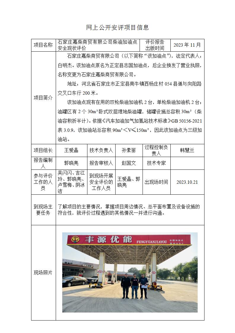 石家莊嘉柴商貿有限公司柴油加油點安全現狀評價