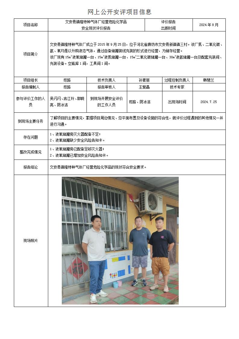 文安縣鎮(zhèn)隆特種氣體廠經(jīng)營(yíng)危險(xiǎn)化學(xué)品 安全現(xiàn)狀評(píng)價(jià)報(bào)告