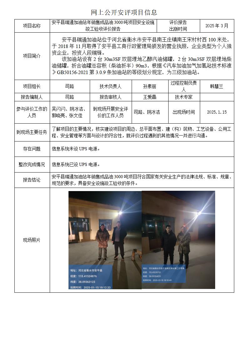 安平縣瑞通加油站年銷售成品油3000噸項(xiàng)目安全設(shè)施竣工驗(yàn)收評(píng)價(jià)報(bào)告