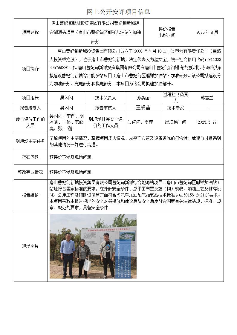 唐山曹妃甸新城投資集團(tuán)有限公司曹妃甸新城綜合能源站項目(唐山市曹妃甸區(qū)麒祥加油站)加油部分