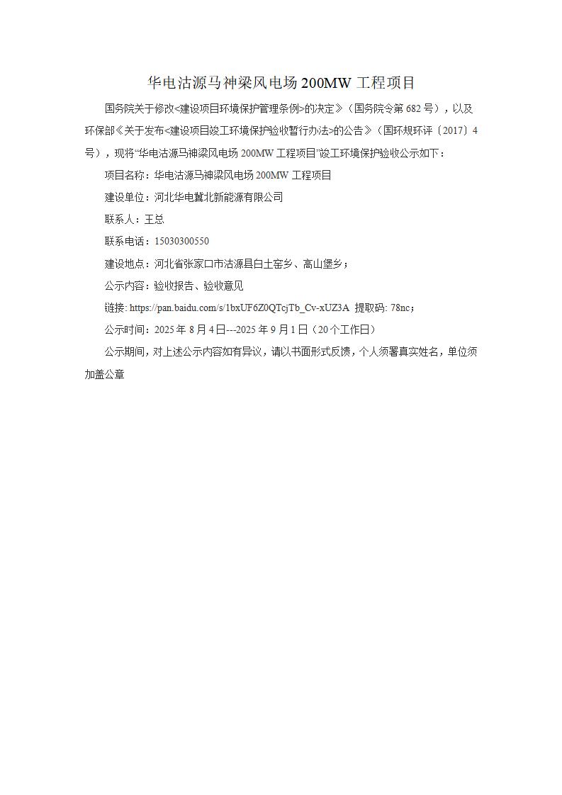 華電沽源馬神梁風電場200MW工程項目