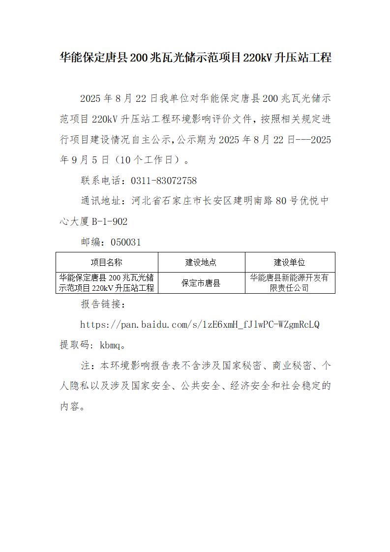 華能保定唐縣200兆瓦光儲示范項目220kV升壓站工程